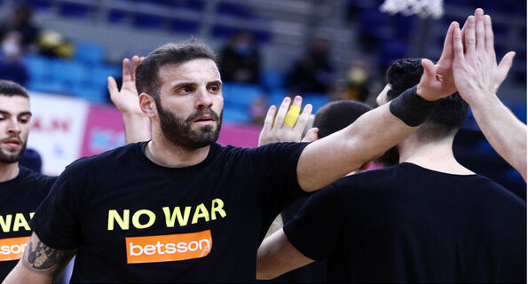 Σε μία συμβολική κίνηση κατά του πολέμου στην Ουκρανία, προχώρησε η ομάδα της AEK BC με την Betsson, πριν την έναρξη του αγώνα με τον Απόλλωνα Πατρών στο κλειστό των Άνω Λιοσίων.