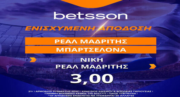 Επίσης στην Betsson βρίσκετε τη νίκη της Ρεάλ με Ενισχυμένη Απόδοση στο 3,00!