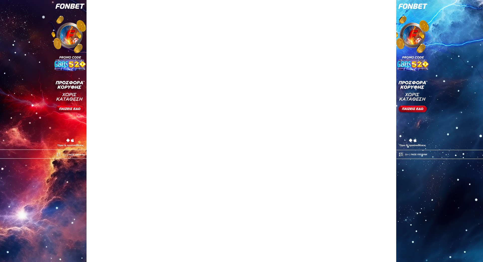 21+ |Αρμόδιος Ρυθμιστής ΕΕΕΠ | Κίνδυνος εθισμού & απώλειας περιουσίας | Γραμμή βοήθειας ΚΕΘΕΑ: 210 9237777 | Παίξε Υπεύθυνα |