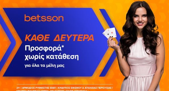 Η διασκέδαση στην Betsson βρίσκεται πάντα στο 100%, με τους πελάτες της να απολαμβάνουν μία ξεχωριστή έκπληξη* κάθε Δευτέρα χωρίς την προϋπόθεση κατάθεσης.